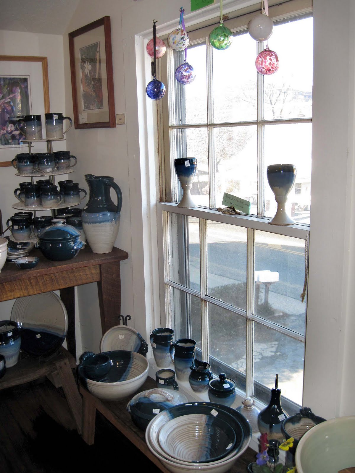 There’s nothing much in the town of Stanardsville. We visited a couple of nearby wineries (more about that later), meandered through the Noon Whistle Pottery, and took the 5-minute walking tour of the town. But that’s all we really needed. We enjoyed dinner in the restaurant of the inn, where the innkeepers do most of the cooking, serving up mostly Southern comfort foods with a slightly gourmet touch. We ate till our buttons popped (enormous portions of tender pot roast and braised pork shank), and then were able to just hoist ourselves upstairs to bed.