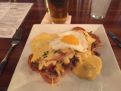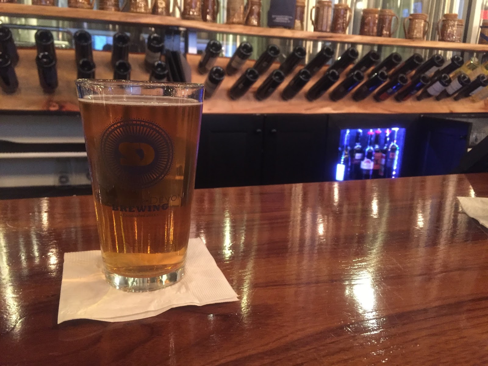 After a fun morning at the range, we arrived at the busy brewpub mid-afternoon and grabbed a couple seats at the bar. There were 10 beers in tap, but we both started with half pints of Big Pun. This big beer checks in at an amazing 11.5% ABV, with a reddish-brown color and thin white head. The aroma is dark fruit and caramel. The rich flavor of dark fruit and mild sweetness is prevalent, owing to the addition of raisins during fermentation. A bitter citrus hoppiness moderates the sweetness creating a well-balanced flavor profile for such a big beer. The alcohol level is well-masked.