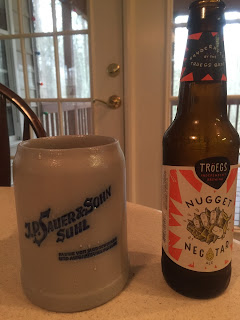 The trial pint being found more than acceptable, I had my growler filled. Not being one to let the brewery-freshness wane, I cracked open the growler shortly after arriving home, just in time for some exciting Hokie basketball.
