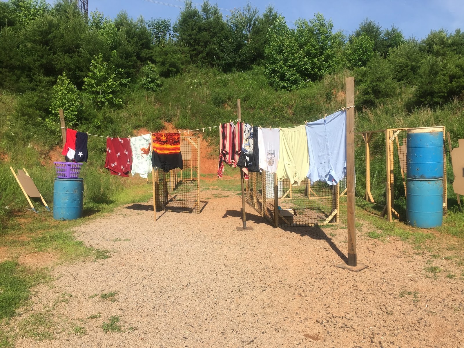 Moving to the next stage, we found a long clothesline with laundry strung across the bay. Starting with our hands on a laundry basket, when then move across the bay shooting at target down range. Moving around the clothes line, we then moved down range engaging targets from various cover positions.