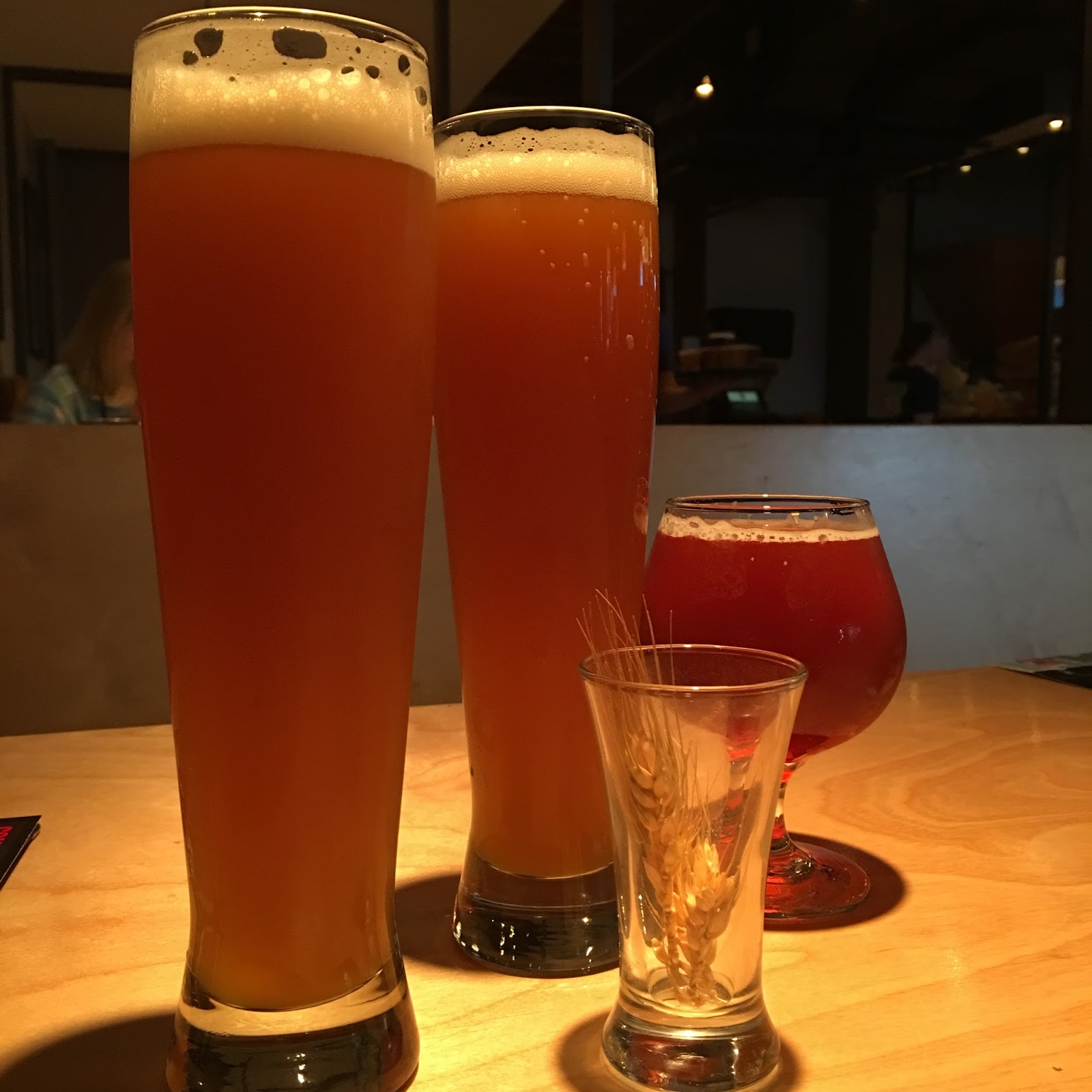 Finally, to my son’s delight, we made it to our last stop for the day, South Street Brewery. All of us were quite hungry as it had been a long day since lunch at Devils Backbone. South Street’s varied menu was just the ticket. But first things first, we had to decide on a beverage. I opted to try the Tongue Dropper, an odd but enticing sounding “Sour Double IPA”. Our server warned it was more Sour Ale than IPA, but upon sipping my impression was that of a citrusy Double IPA that had a mildly tart tang at the end. I found it a worthy sipper, and a good “I’ve had enough” beer at the end of the day. I paired my beer with a plate of hearty Mac n’ Cheese with sausage. Colleen and Checkered Flag indulged their wheat beer passion with El Jefe’s Hefeweizen.