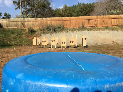 The final stage I recall from last month, when we shot it in the opposite direction. This stage started on the right side with three targets shot in tactical sequence. We them moved to the center to engage two targets from cover with two body and one head shot. These two targets were partially blocked by high non-threats, which made getting the body shots a challenge. The final left side position was another tactical sequence group of three targets. This was another -0 stage for me.