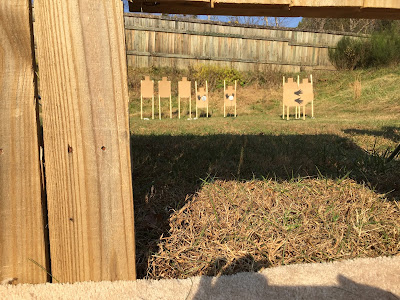 All four stages at this match were stages which were shot previously during the year, and they were all memorable. Stage 1 started us seated with the loaded gun and all mags on a table. Seven targets were arranged in front of us, to be shot in tactical sequence. One target was placed much further down range than the others to break up the rhythm. It was a fun fast stage, one that I completed -0.