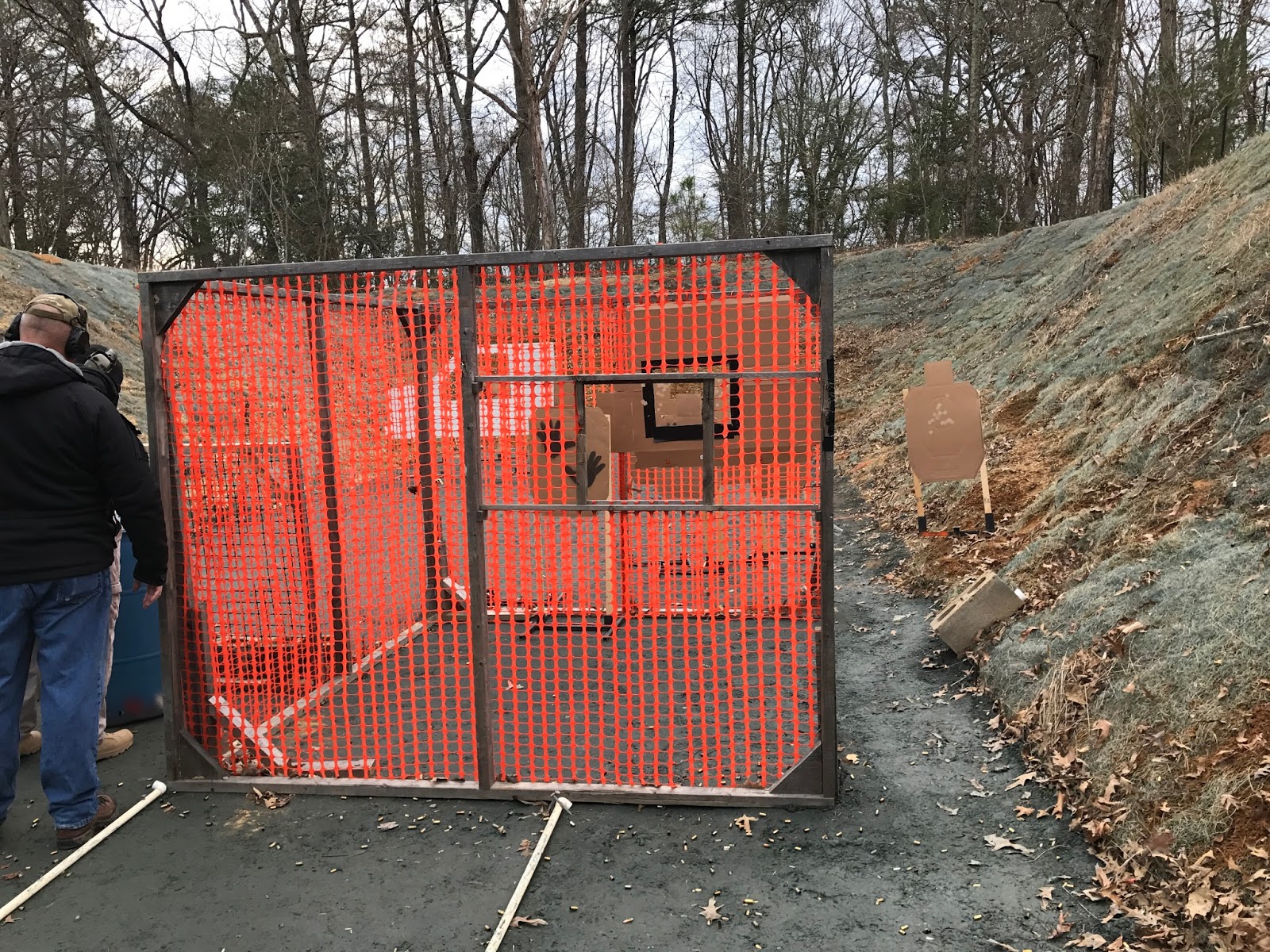 The scenario for the next stage started us holding a couple of water bottles before engaging some distant targets in a “car.” Next we moved to a window where more targets were found. The final target on this stage required a significant lean out from the fault line to hit, and the hard cover at the edge of the port took quite a beating.