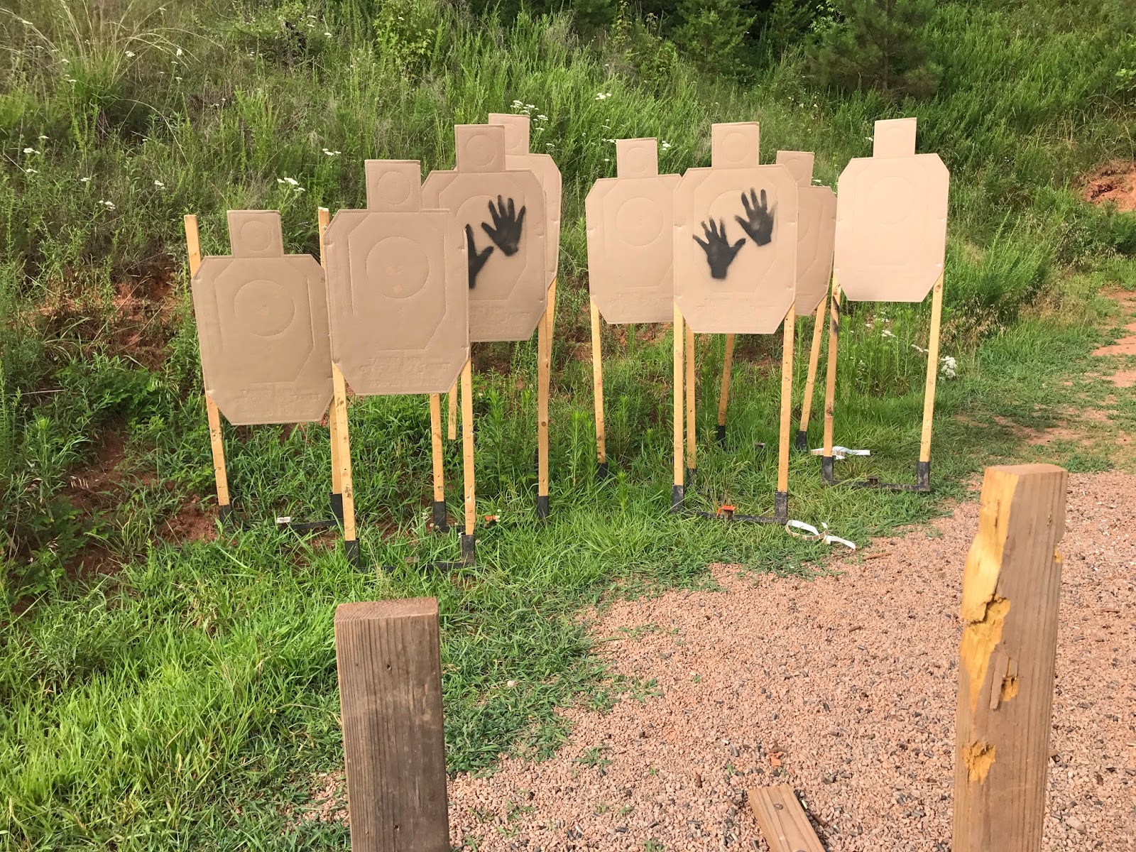 The final stage was very interesting and offered the opportunity to do all shooing from a kneeling position. The loaded gun, downloaded to six rounds, and all magazines were left on our “fallen comrade,” on who we were performing CPR. There were nine targets spread out before us. The targets were shot in tactical priority which meant some wide swings, past other targets, between shots. I lost my place momentarily but did hit all the targets, in the right order. One of the far targets was scored -4, something I called while shooting. I couldn’t see the holes, but my brain registered that the sights were off, although it didn’t register a call to make up the shots. I ended up -8 for the stage.