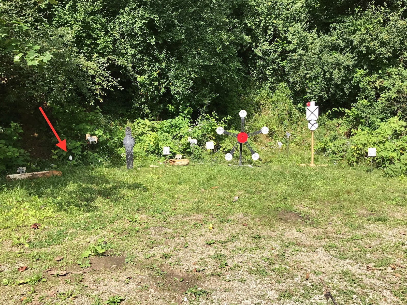 The second stage was an all steel stage. A variety of steel was set up; a Texas Star, square plates, animal targets, a swinging hostage target, and a very, very small steel IDPA target — 17 in all. All steel was shot while stationary. It’s been a number of years since I shot a Texas Star, so that was fun. Hitting the steel “hostage” would be a hit on a non-threat adding to the challenge of the small red swinger. I didn’t hit the non-threat, but used all 31 one of my rounds, and left the tiniest target standing.
