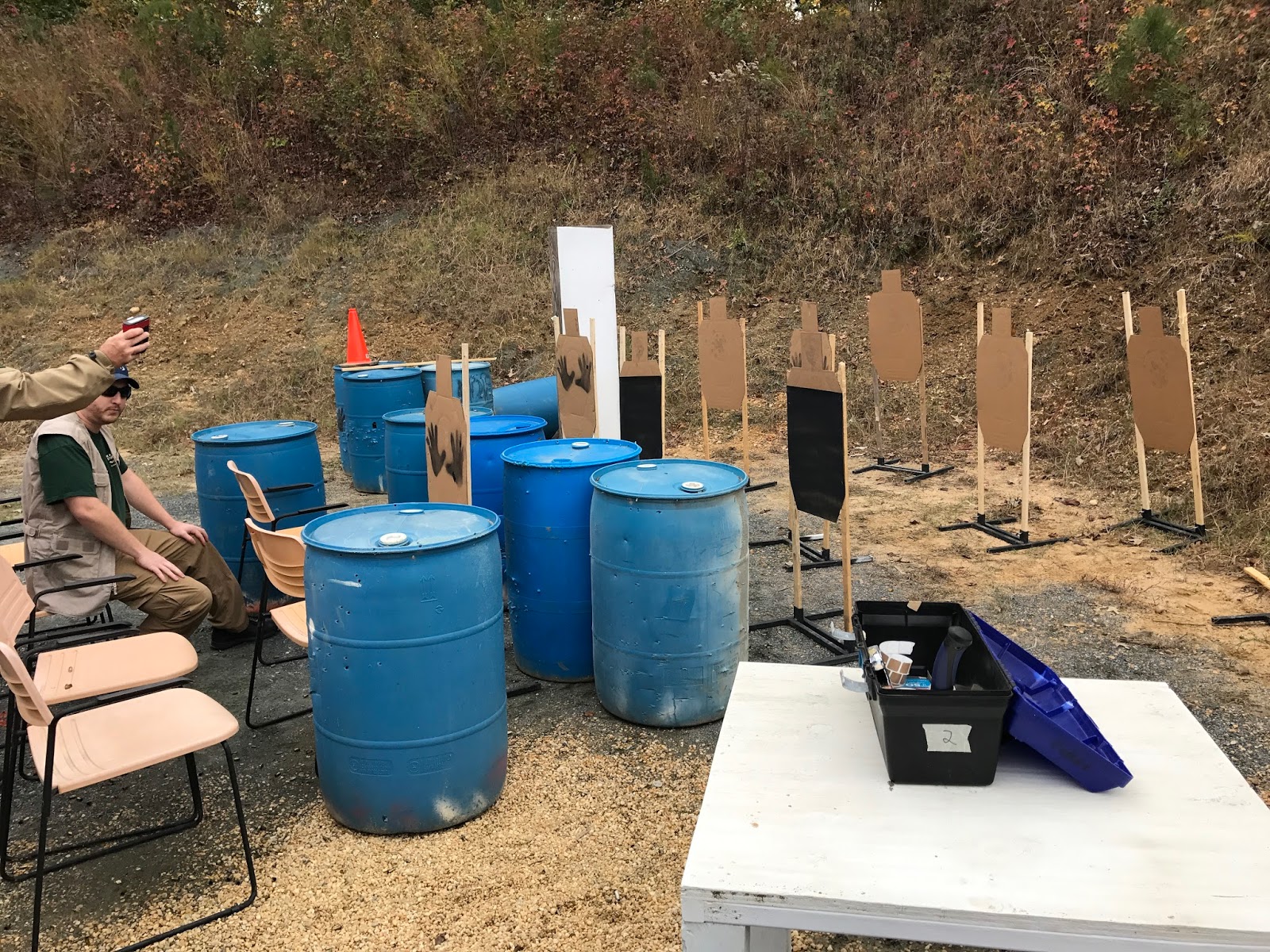After engaging the rocking target at the next point of cover, we also found three steel poppers and three more paper targets. One of the targets had barely more than the head available. Although the hit on the non-threat and a miss contributed to 12 seconds in penalties, I thought the stage was a lot of fun.