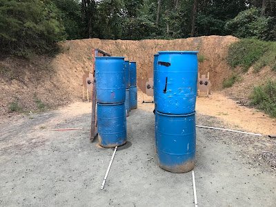 On “The Last Deal” we started facing three open targets at an opening in a wall of barrels. Then moving to either side, there were targets to be engaged, again testing our ability to shoot while making challenging leans around the corners. This was another good run, with just one point down.