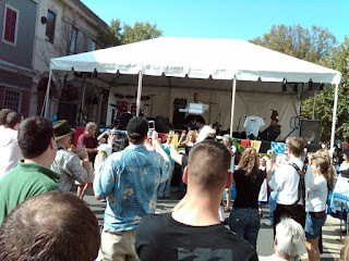 This picture was taken at Oktoberfest last weekend. An impromptu bike rack. As I walked down the hill to the event I passed a number of residents and students with their bicycles. We've heard George Solley and Brad Ellis on city council talk about the need for a more bicycle friendly city. Where have those promises gone? Has the economy made us decide between fancy street signs vs. bike racks? Or how about demolition costs of Wings? Would it kill the city to install a few places to lock up safely? And if it really is too much for the city, how about downtown merchants stepping up to the plate?