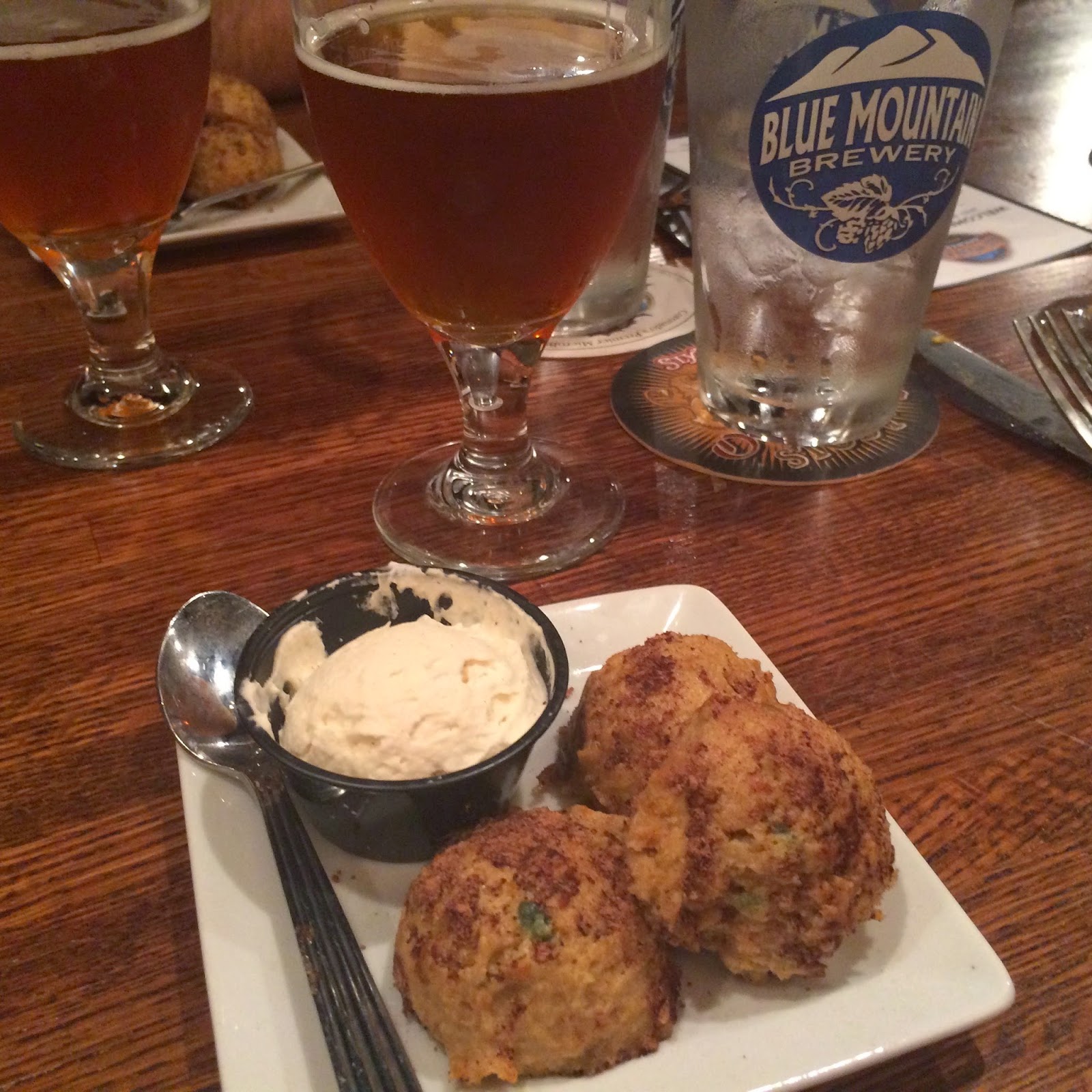 Next up was the popular Dead Rise OLD BAY Summer Ale served with "Bay-B-Que Wings" which were deep fried then tossed in OLD BAY BBQ sauce. The wing coating was moderately spicy with a hint of sweetness. The OLD BAY flavored beer maintained the red pepper spiciness providing a seamless flavor experience.